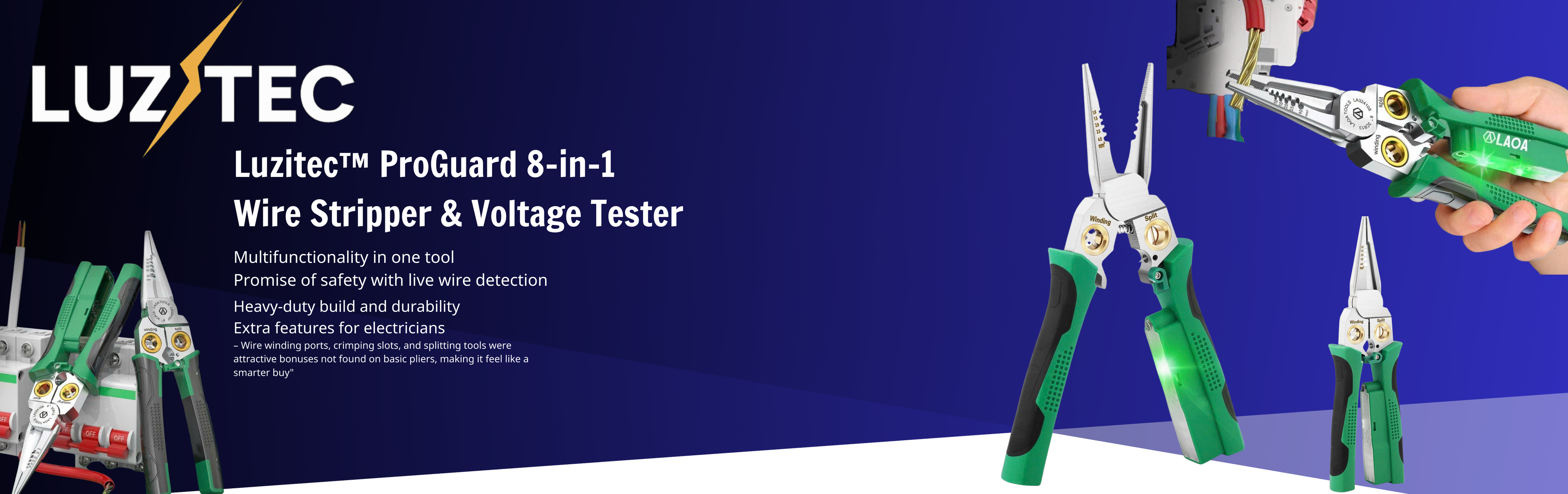 Discover the Luzitec™ ProGuard 8-in-1 Wire Stripper & Voltage Tester, where precision meets safety. Our commitment to durability, multifunctionality, and ergonomic comfort makes us stand out from ordinary tools. This isn’t just a wire stripper— it’s an all-in-one solution for faster, safer, and smarter electrical projects.